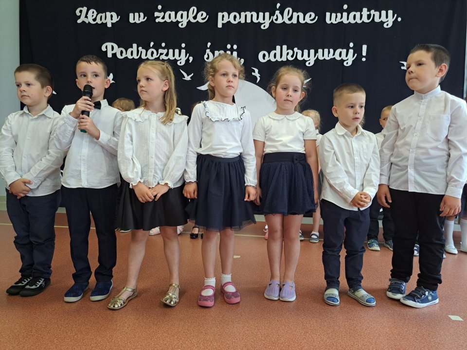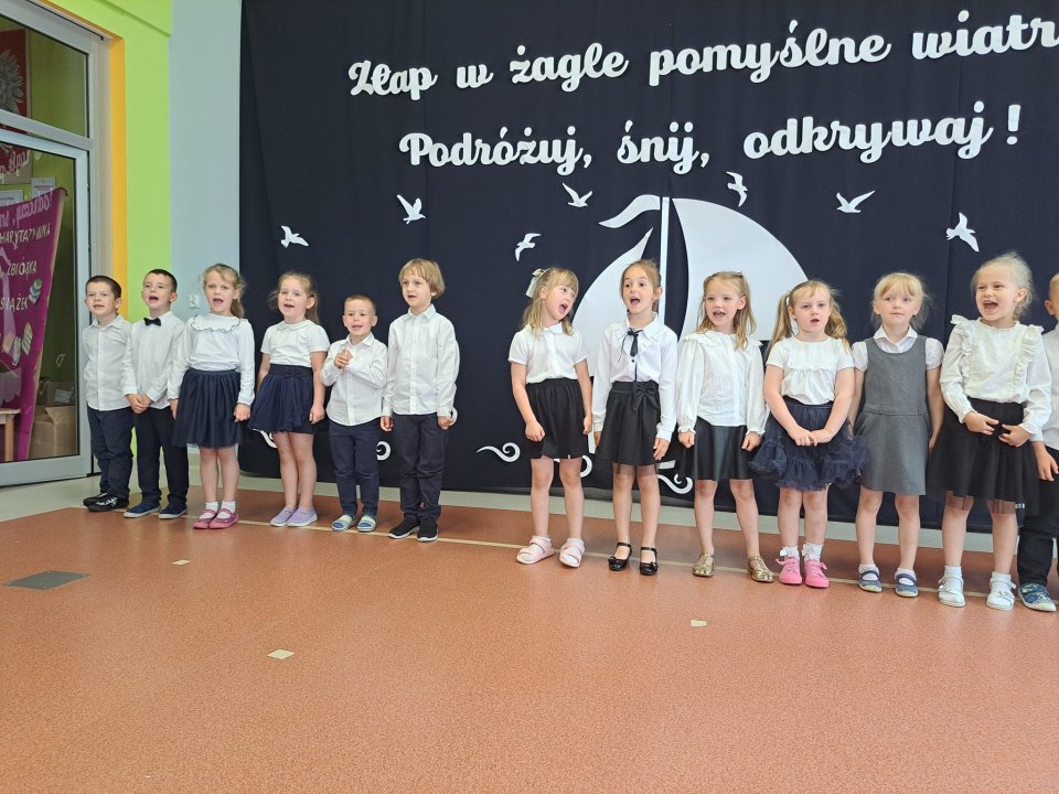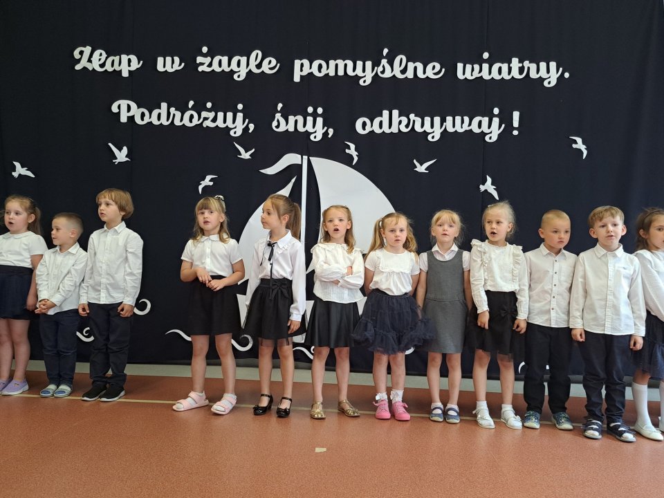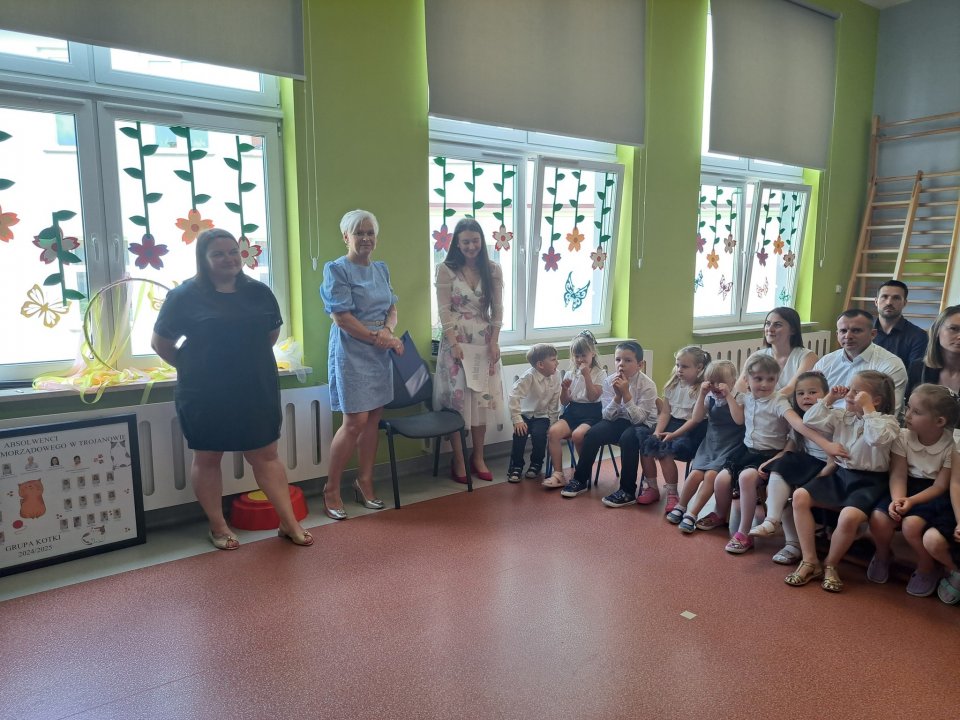 W dniu 12 czerwca w naszym przedszkolu odbyła się uroczystość zakończenia roku przedszkolnego. Pięciolatki pożegnały się ze swoimi paniami, całym personelem przedszkola, a także z młodszymi kolegami i koleżankami. Na zakończenie absolwenci otrzymali dyplomy ukończenia przedszkola i książki. Wszystkim dzieciom życzymy powodzenia i wielu sukcesów w szkole.